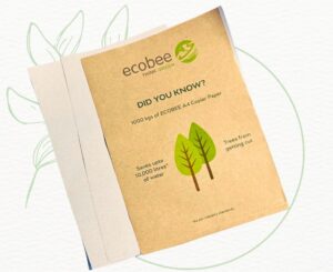 Transition to Ecobee’s recycled A4 copier paper for your printing needs. This paper is made without cutting trees or using harmful bleaching chemicals, saving approximately 23.5 litres of water per ream. Suitable for all inkjet and laser printers, it ensures 99% jam-free performance. Pricing is available upon request for bulk orders.